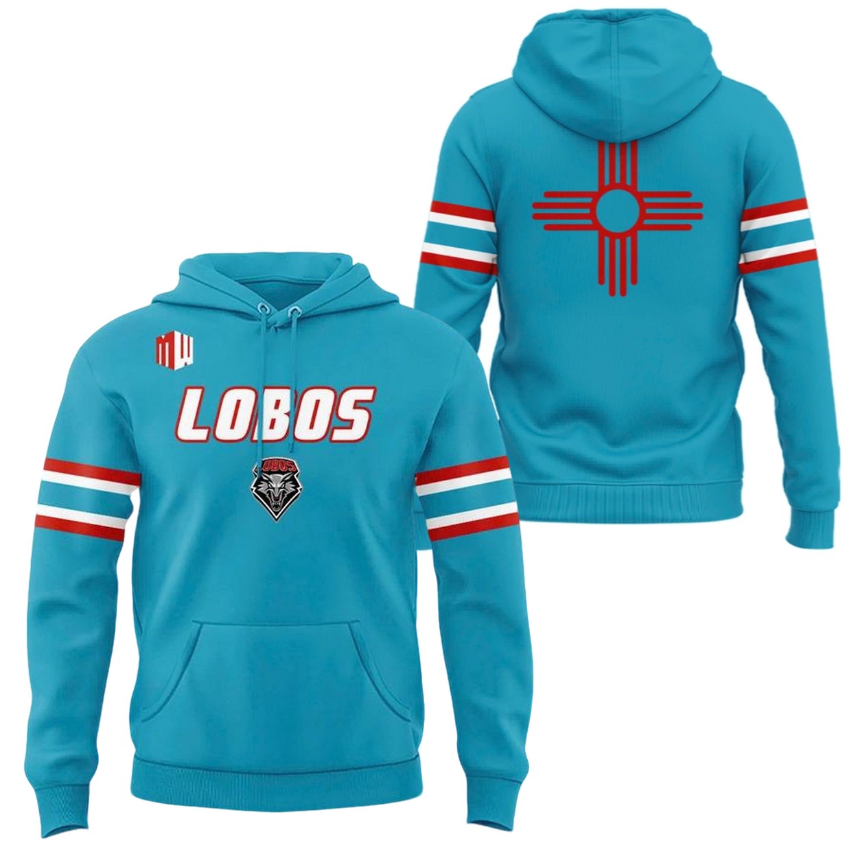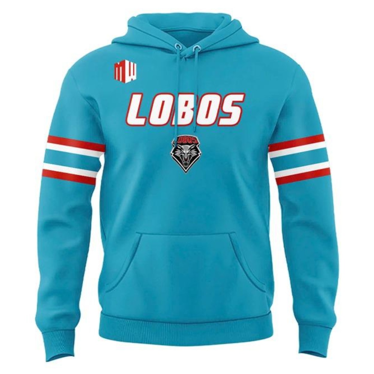 Celebrate Lobos football in vibrant turquoise style. Order the Mexico Lobos Football The Turquoise Uniform Hoodie today and wear your pride on and off the field!