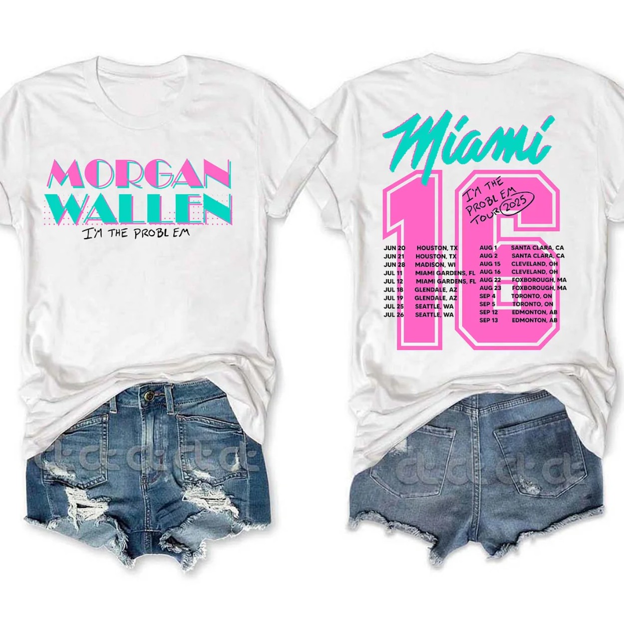 Get ready to turn heads with the Morgan Wallen Miami I’m The Problem T-Shirt, a must-have for fans of the country music sensation! This stylish tee features a vibrant design with “Morgan Wallen” in bold pink and teal lettering, paired with “I’m The Problem” for that edgy vibe. The back showcases “Miami ’16” in striking pink, alongside a 2025 tour schedule, making it a collector’s item. Available in sizes S to 5XL, it’s crafted from a comfortable cotton-polyester blend, ensuring breathability and durability for all-day wear.