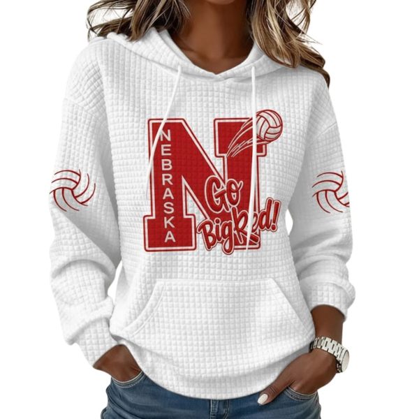 Show your overwhelming passion for the Nebraska Volleyball team with the cozy and spirited Nebraska Volleyball Go Big Red Print Waffle Hoodie!