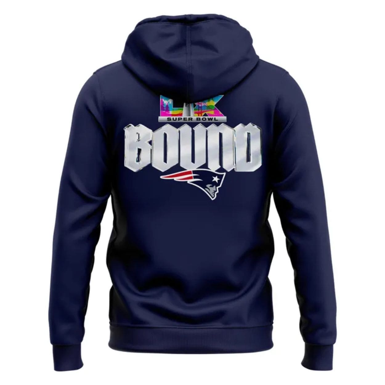 Exclusive Championship Design: Features the bold “PATRIOTS” wordmark and logo on the front, with the iconic “BOUND” graphic on the back to celebrate the AFC Championship victory.