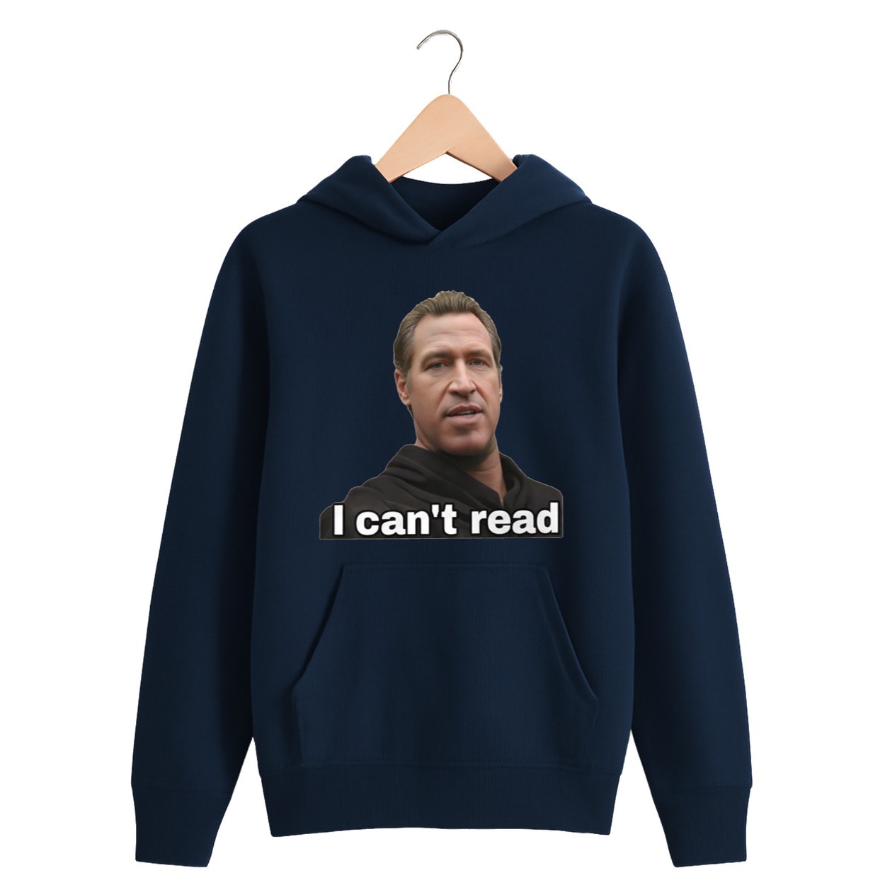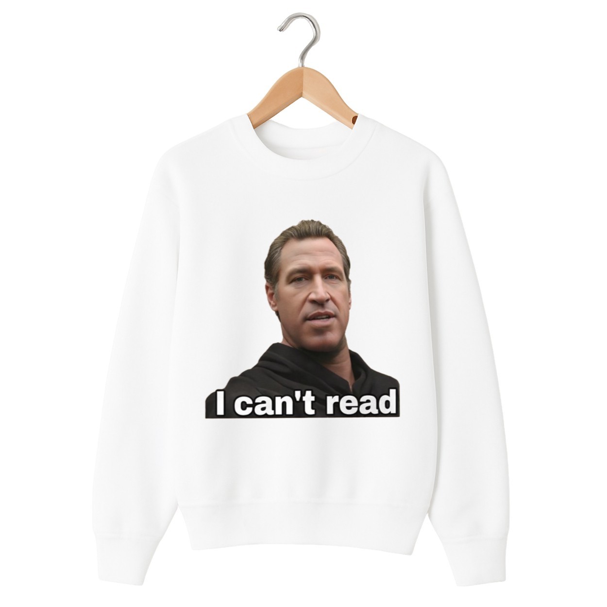 Featuring a stoic, hoodie-wearing graphic of California Governor Gavin Newsom paired with the universally funny phrase “I can’t read,” this design isn’t making a deep political statement—it’s just pure, chaotic internet comedy. Whether you’re wearing it to a casual hangout, a college campus, or just to spark a reaction from your friends, this parody tee is guaranteed to get laughs and double-takes..