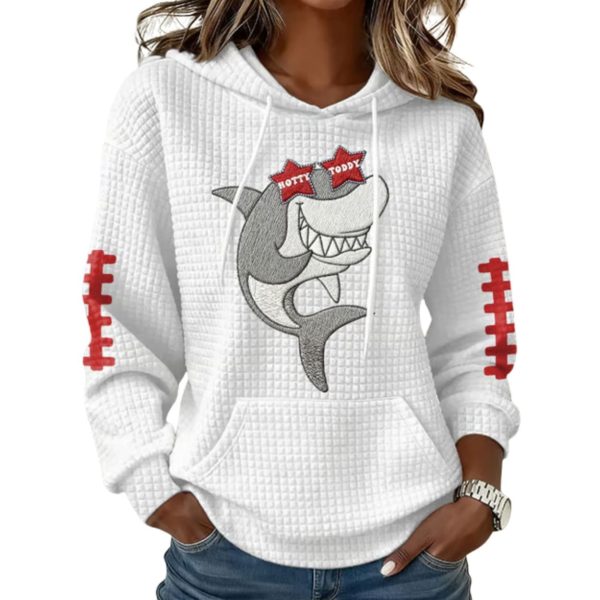 Emblem: The front features a bold, embroidered or patched graphic of the Ole Miss Shark mascot, complete with a wide grin and red star-shaped sunglasses that feature the text “HOTTY TODDY“.