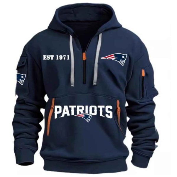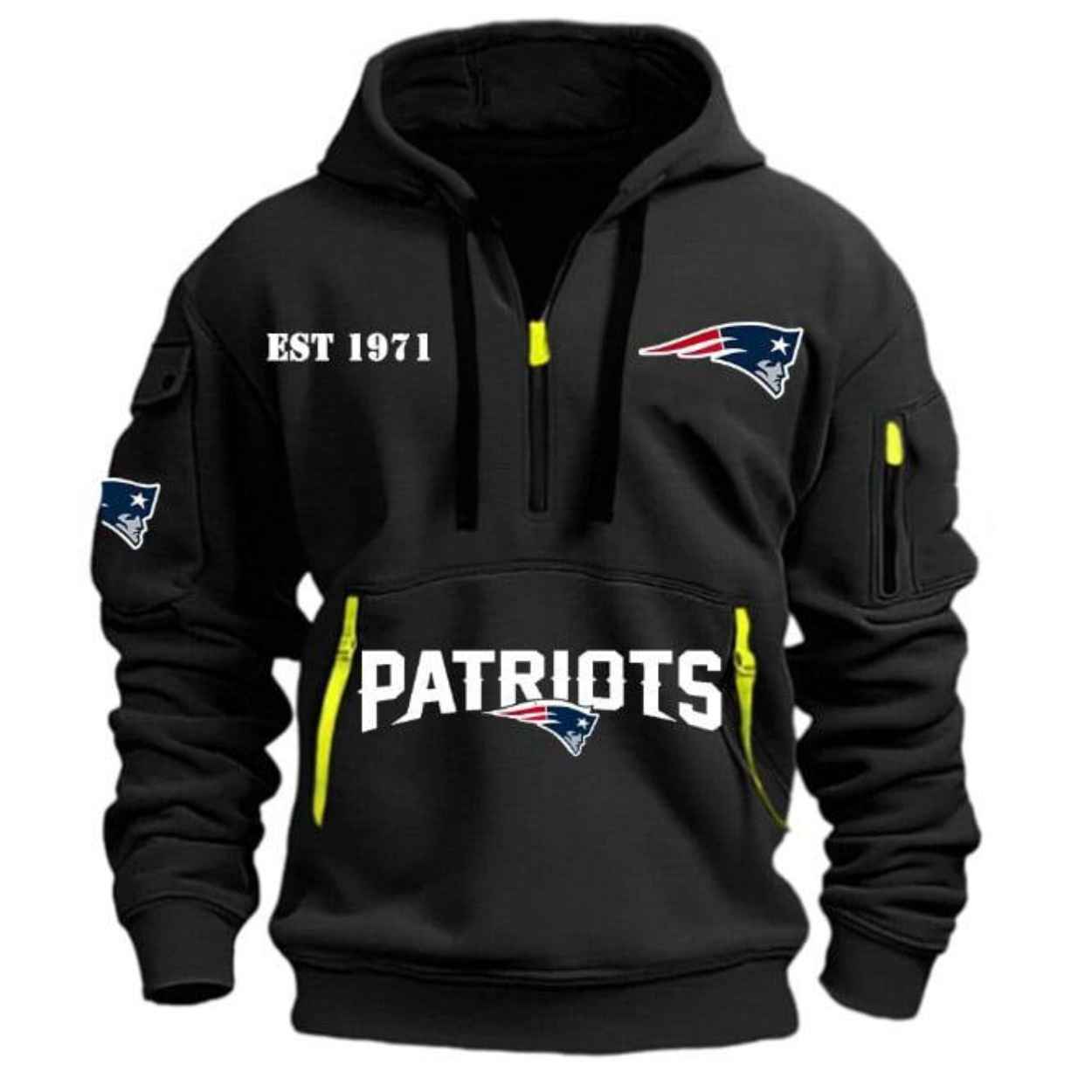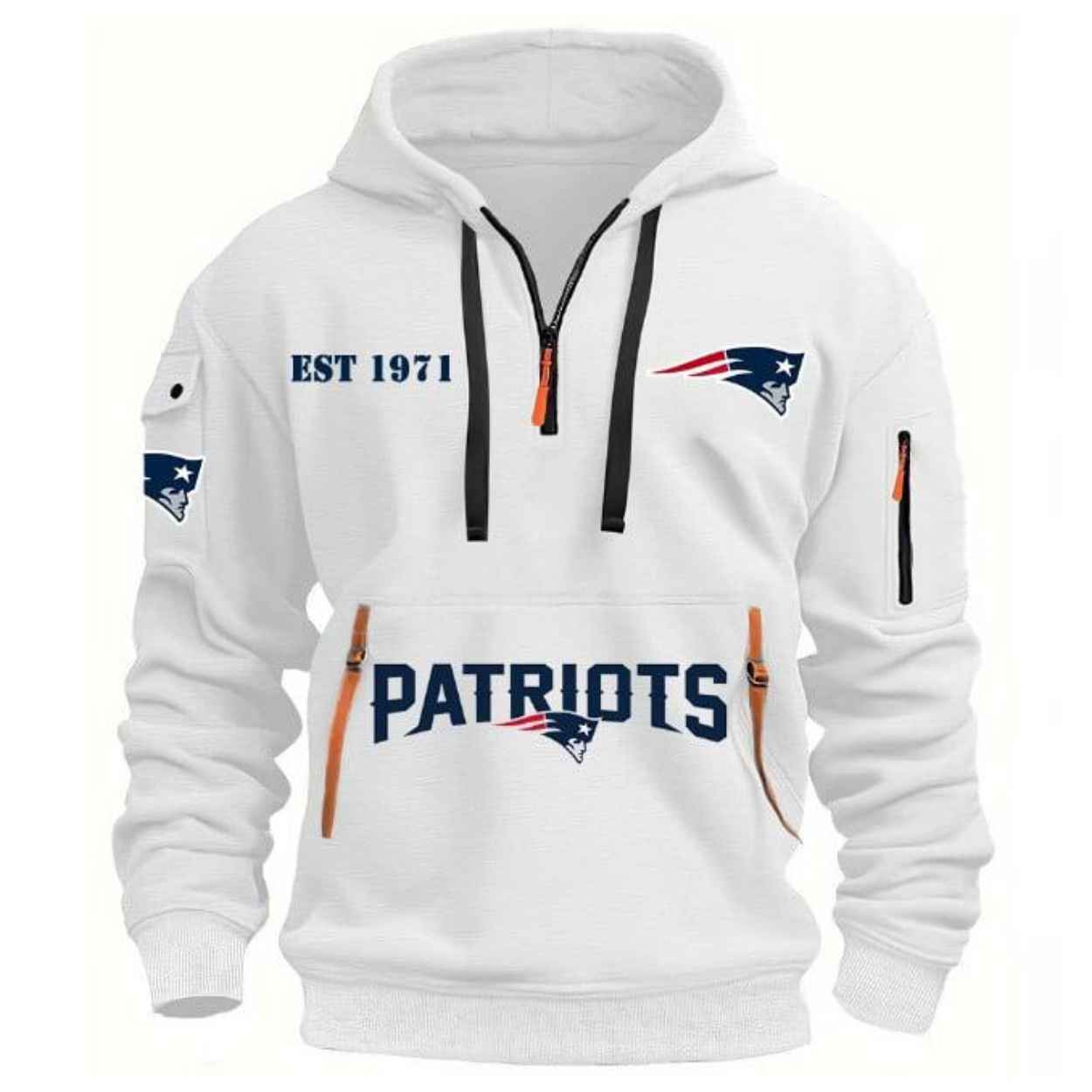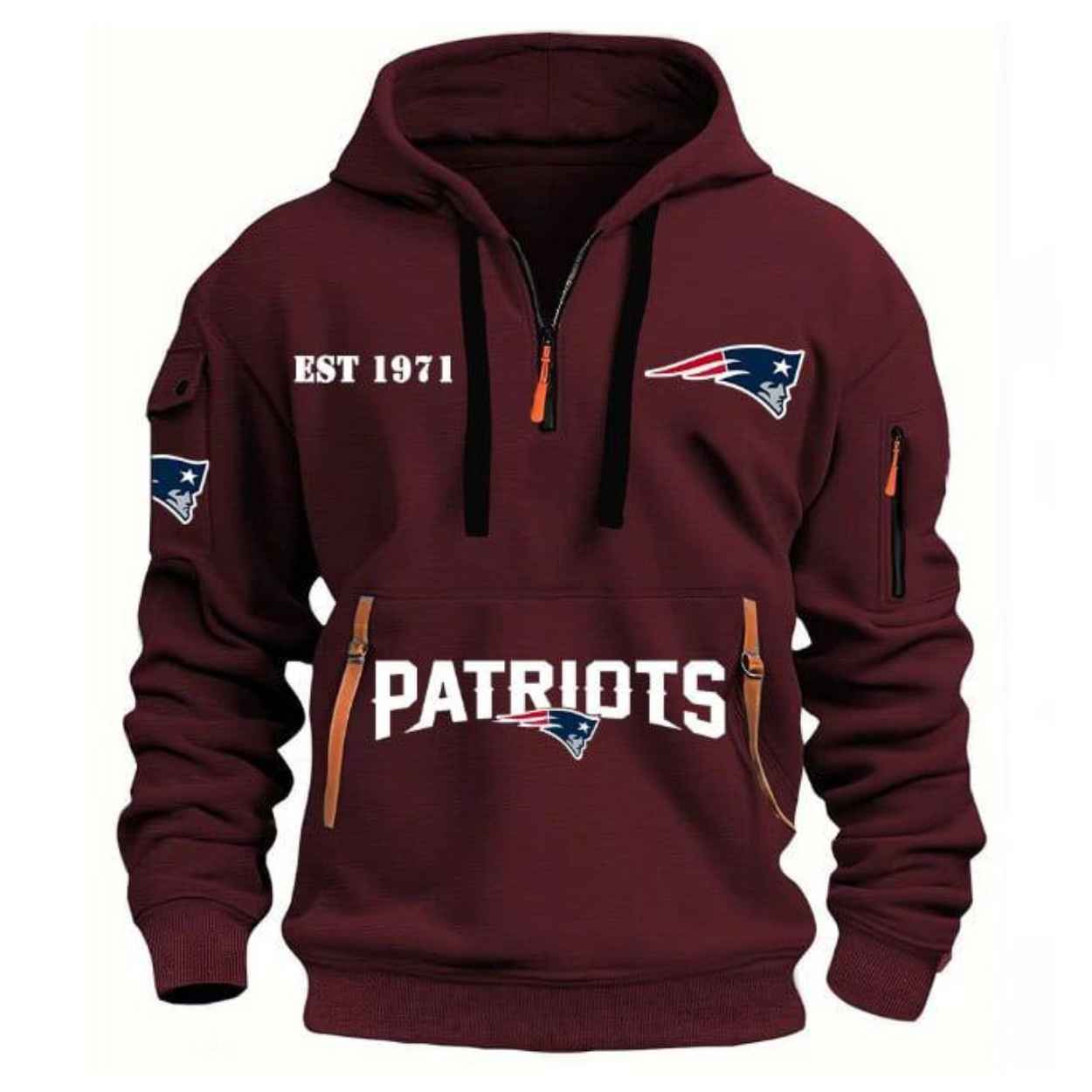 Layer up in functional style and pay tribute to the NE Patriots’ enduring history with the Patriots EST 1971 Quarter Zip Hoodie!