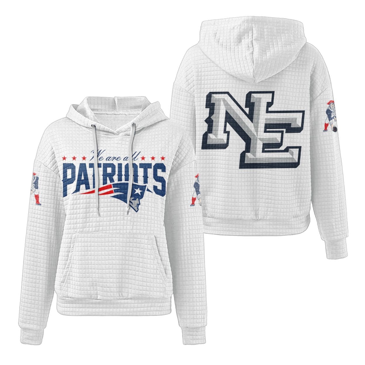 Unleite your spirit with the “Patriots We Are All Patriots Print Waffle Fabric Hoodie”, the ultimate statement piece for dedicated fans.