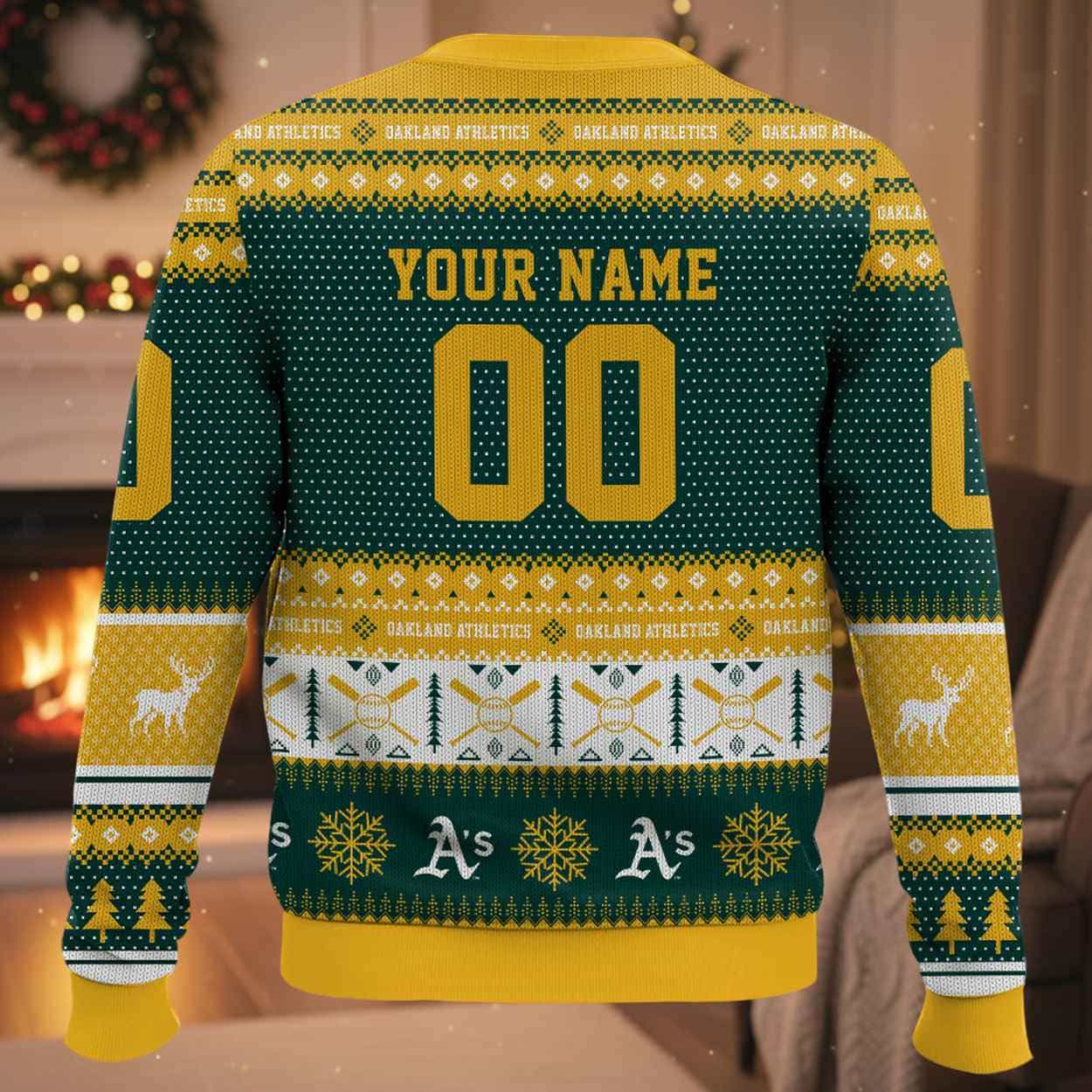 Celebrate your Oakland Athletics pride and the festive season in one personalized, unforgettable garment with the Personalized Athletics Baseball 2025 Ugly Christmas Sweater!