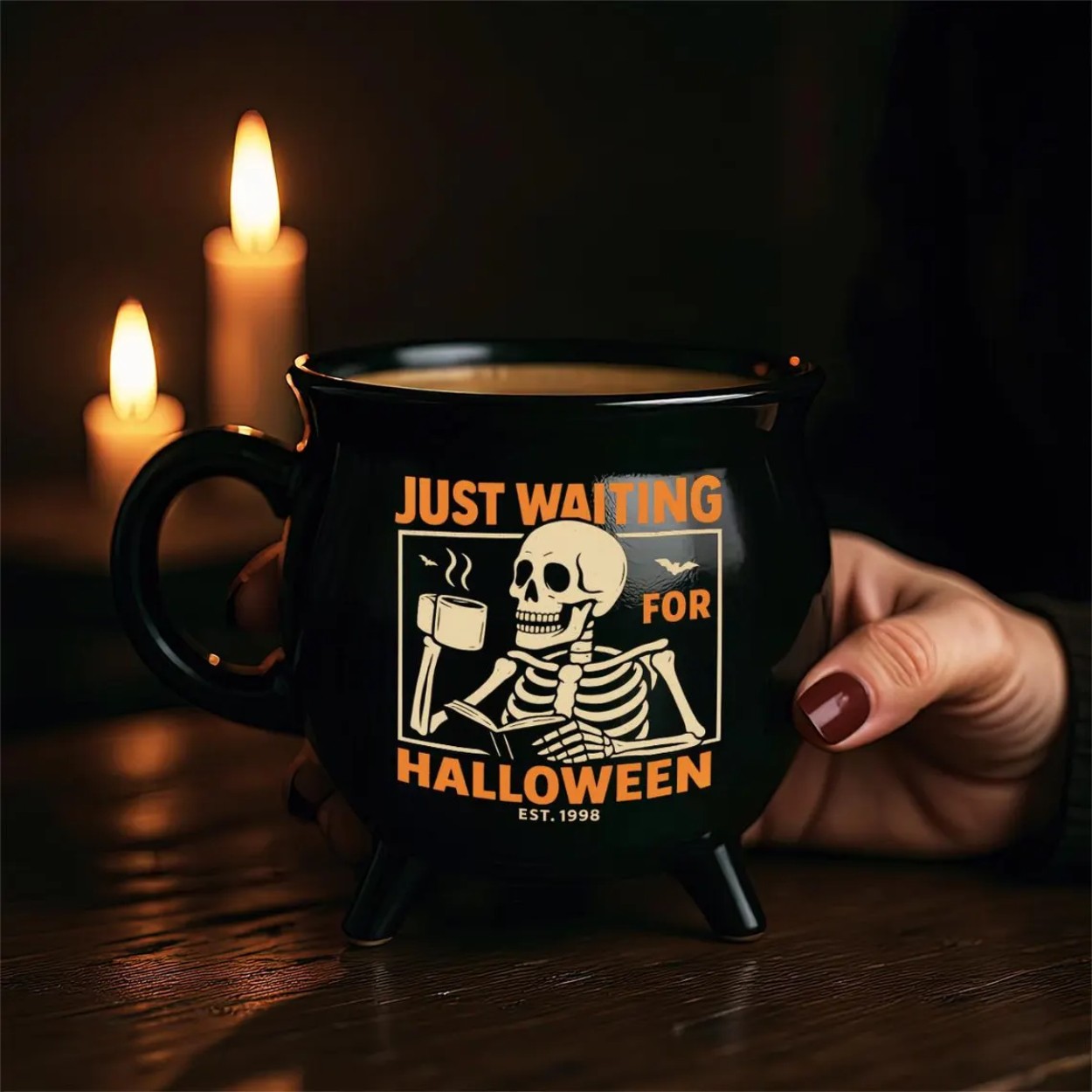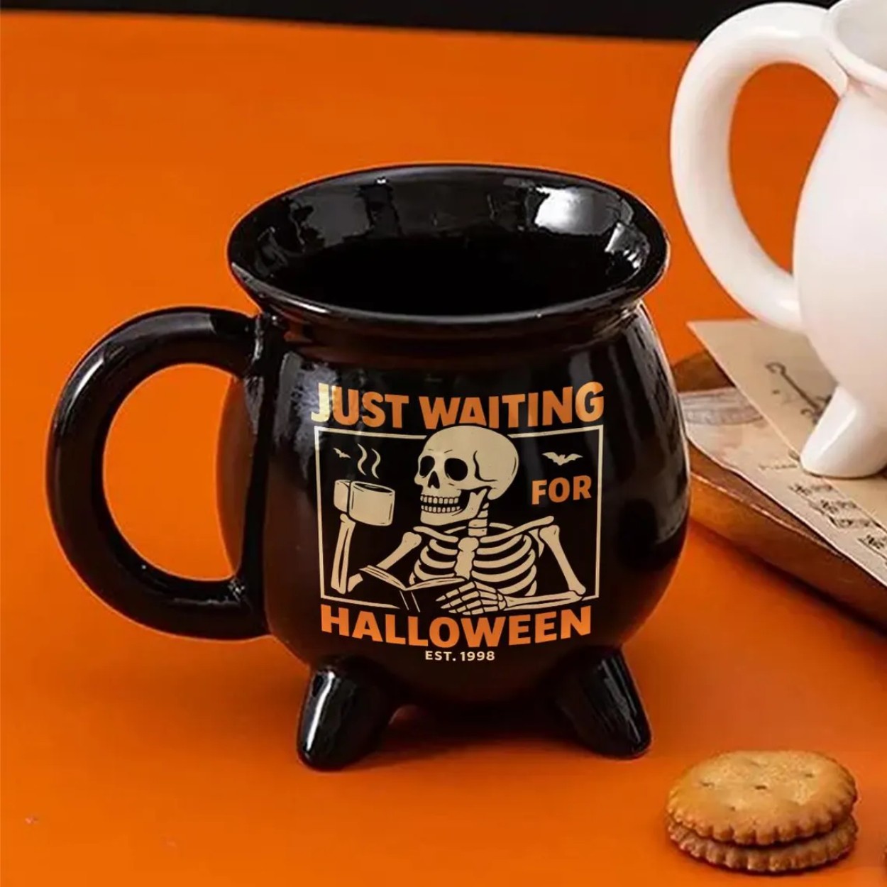 Personalized Just Waiting for Halloween Skeleton Cauldron Coffee Mug – Spooky Sips Await