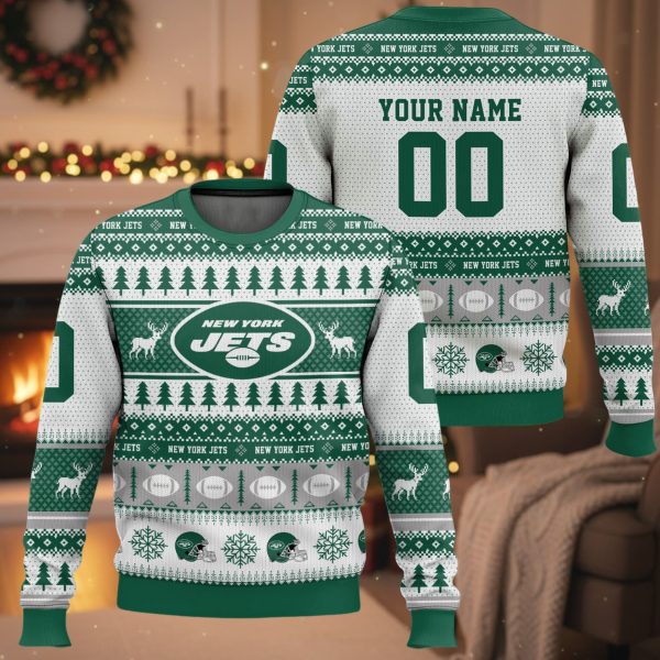 Flight into Festive: Personalized NY Jets Ugly Christmas Sweater