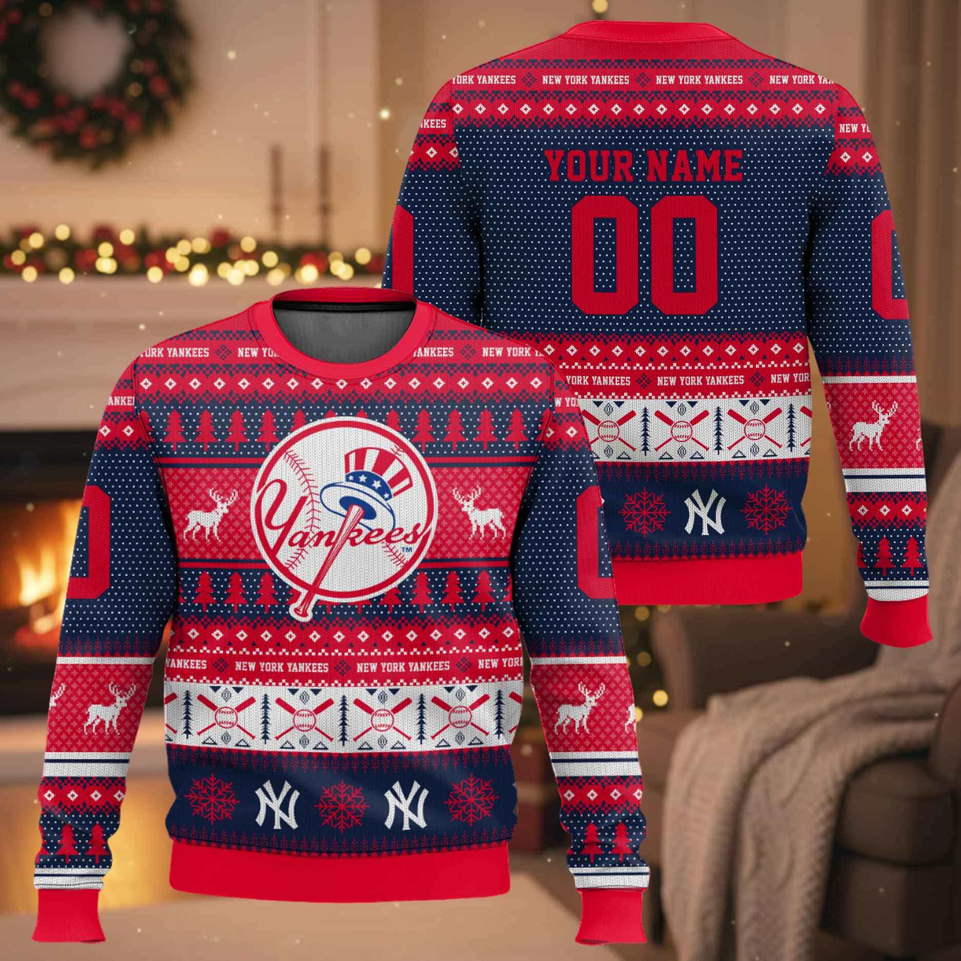 Customize your Personalized Yankees Baseball 2025 Ugly Christmas Sweater today and wear the Pinstripe Pride!