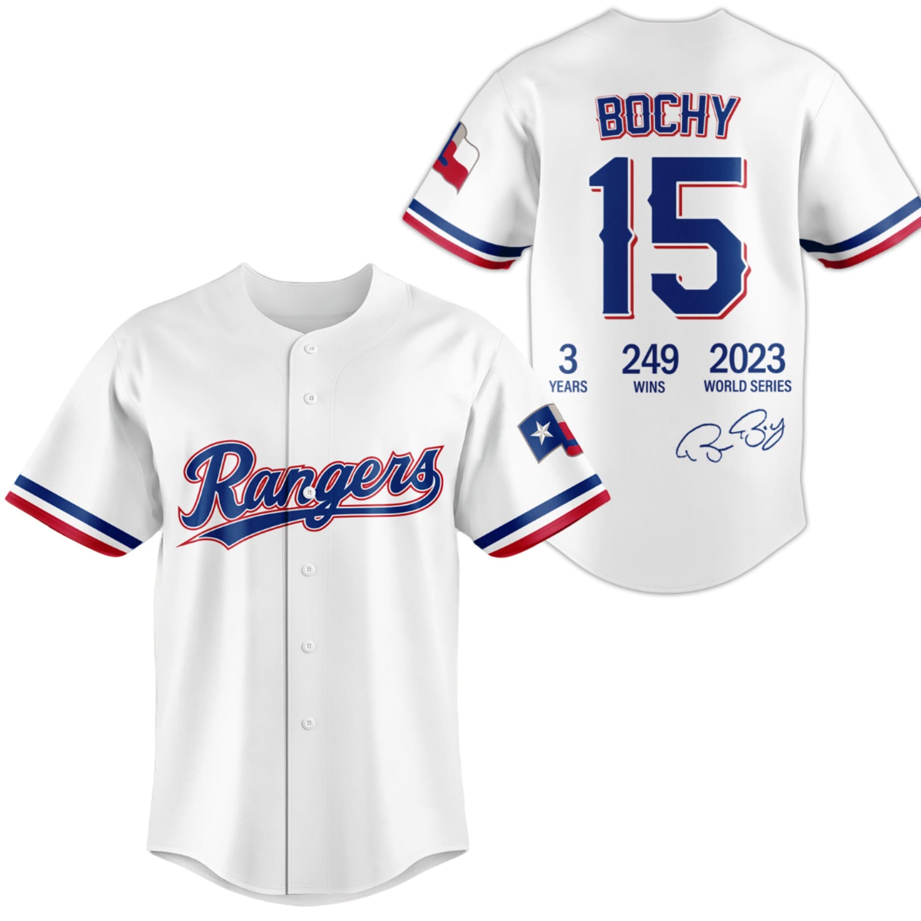 Honor one of the most successful managerial tenures in Rangers history with the Rangers Bruce Bochy Thanks For The Memories Jersey.