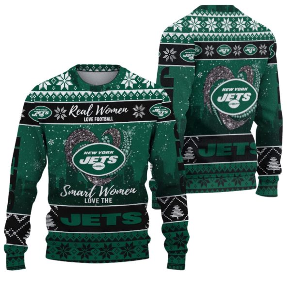 The Real Women Love Football Smart Women Love The Jets Ugly Christmas Sweater