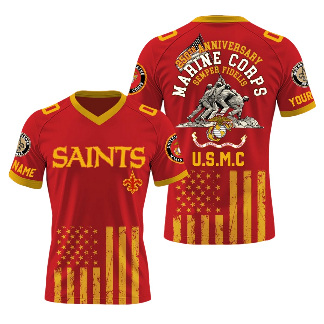 Take action today! Grab your Saints US Marine Corps 250th Anniversary Jersey and honor a legacy of bravery. Visit our store now to customize with your name and secure your size before they’re gone. Wear your pride—order now!