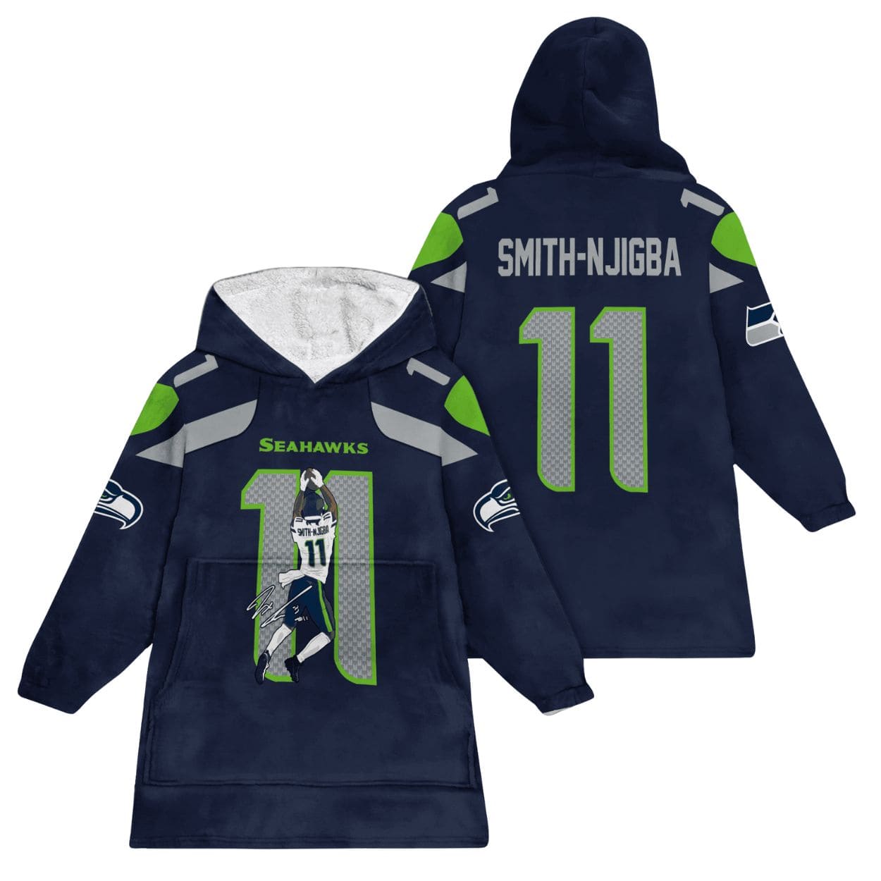 Snuggle into championship-level comfort and showcase your support for star receiver Jaxon Smith-Njigba and the Seattle with the Smith-Njigba 11 Seattle Football Unisex Blanket Hoodie!