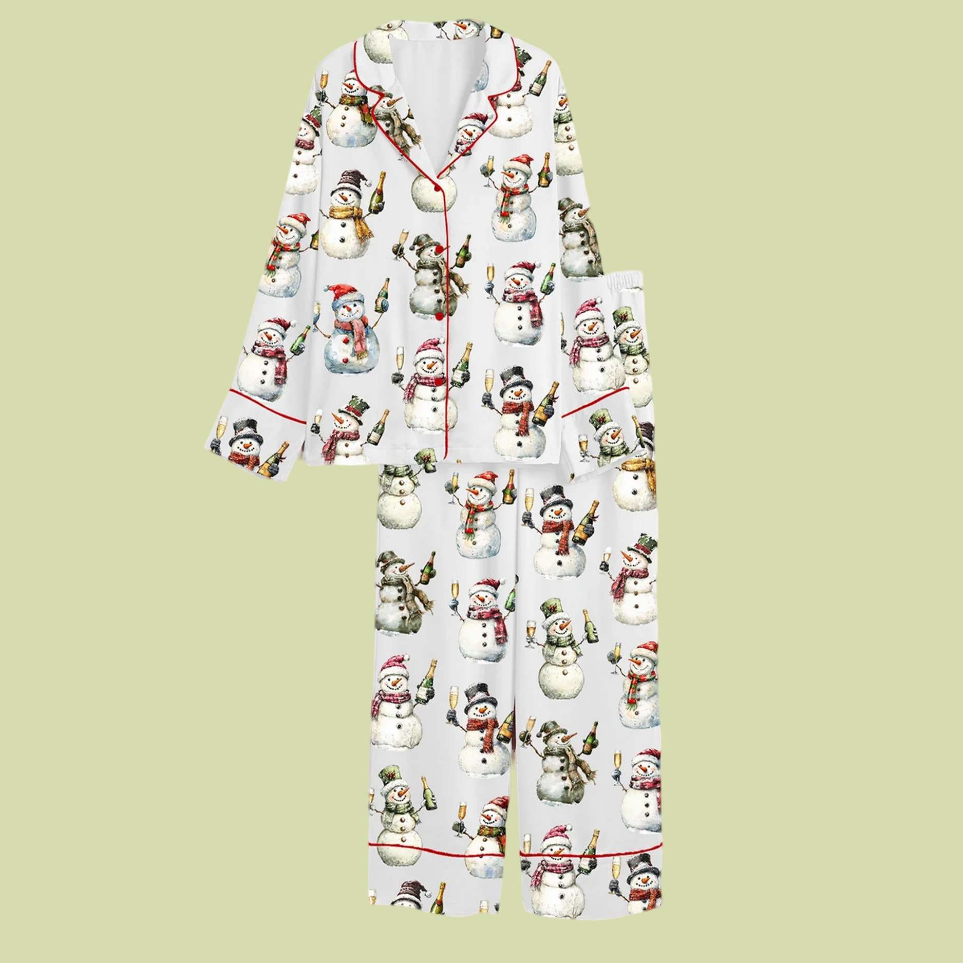 Let the holiday bubbles flow, even in your sleep, with the hilarious Snowman With Champagne Satin Pajama Set! This unique and spirited sleepwear is perfect for celebrating the season with a touch of playful sophistication.