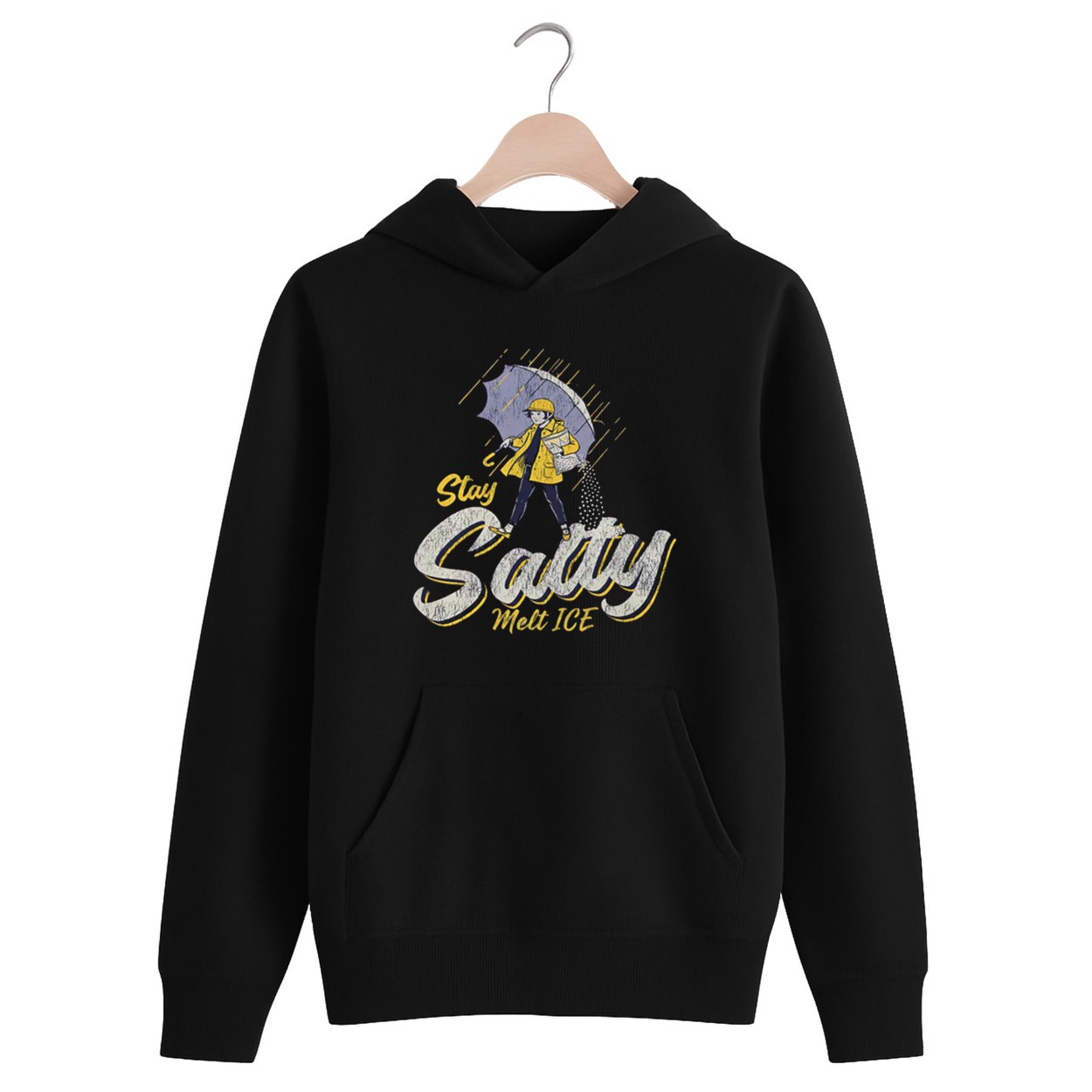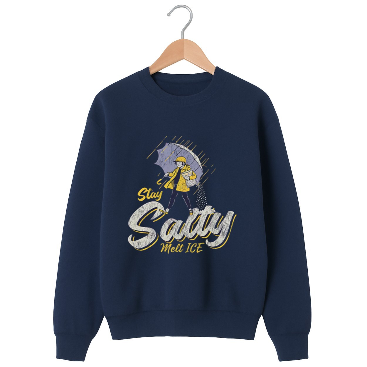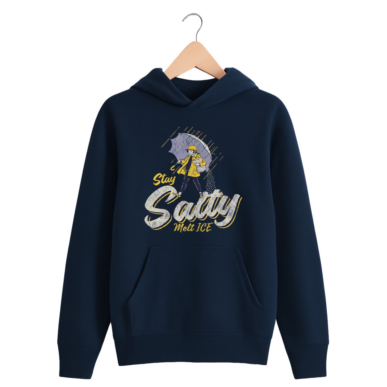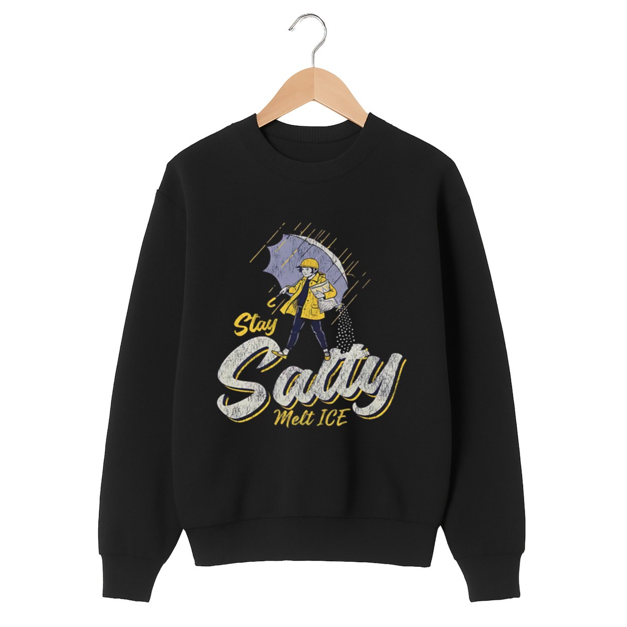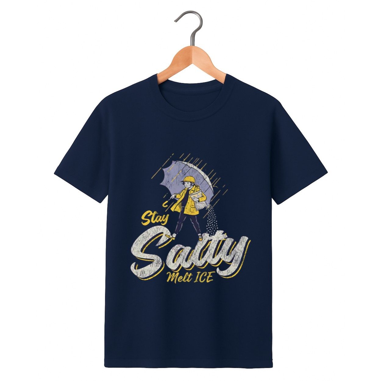 The “Stay Salty, Melt ICE” design plays on the legendary Morton Salt girl, replacing the traditional slogan with a bold social commentary.