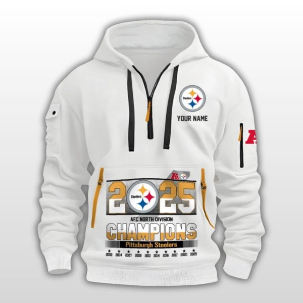 Celebrate the Steel City Victory: Steelers 2025 AFC North Division Champions Quarter Zip Hoodie