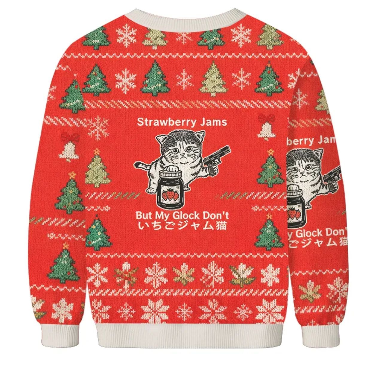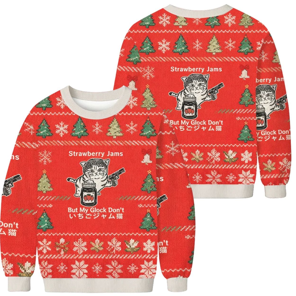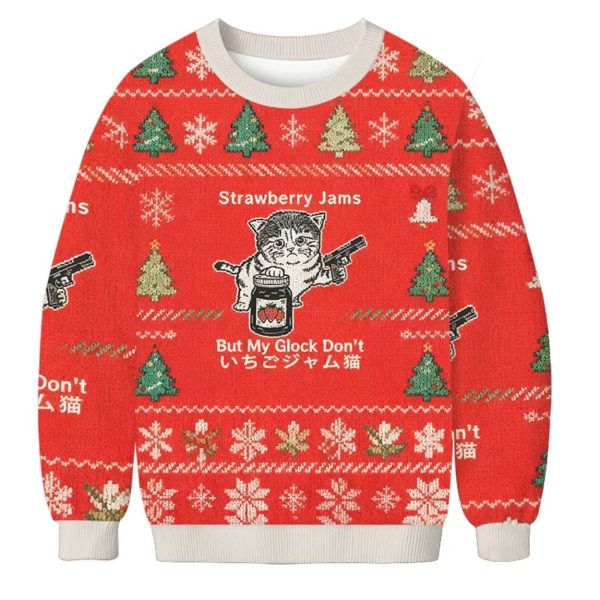 Embrace the chaotic energy of the internet this Christmas with the “Strawberry Jam Cat” Christmas Ugly Sweater! This absurd, hilarious, and unforgettable garment is perfect for those who love surreal memes, unexpected humor, and making a bold, slightly unsettling statement at any holiday gathering.