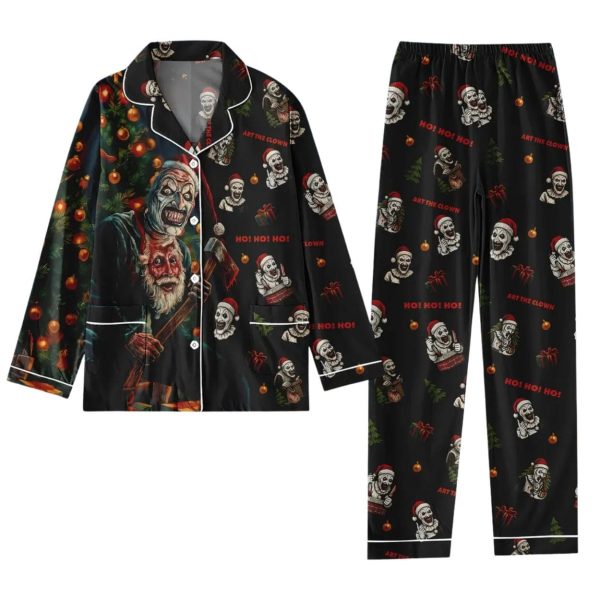 Embrace the unsettling chill of the season with the chillingly unique Terrifier Art The Clown Pajamas Set! This sleepwear is a nightmare-inducing tribute to the silent, sadistic clown that has terrified audiences. Blending festive elements with pure horror, this set is perfect for hardcore horror fans, Terrifier enthusiasts, or anyone who wants their holiday comfort to come with a significant dose of fear.