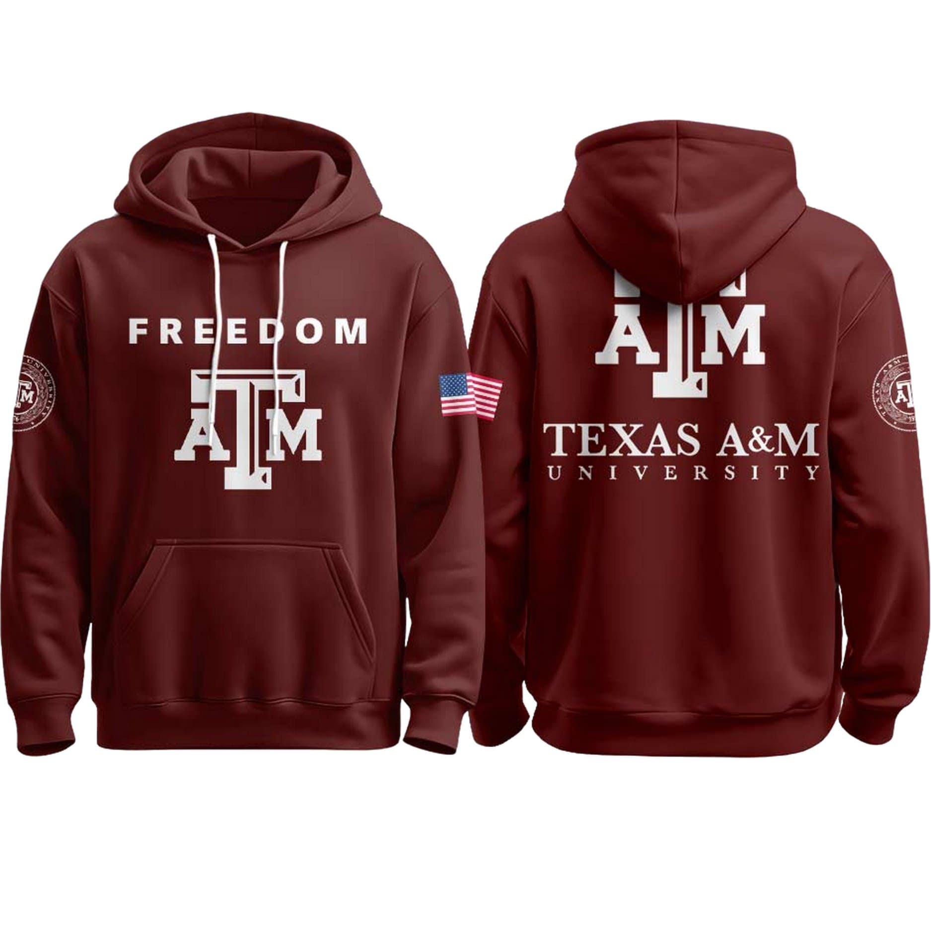 Showcase your deep pride in both your university and your country with the bold Texas A&M Freedom Hoodie!