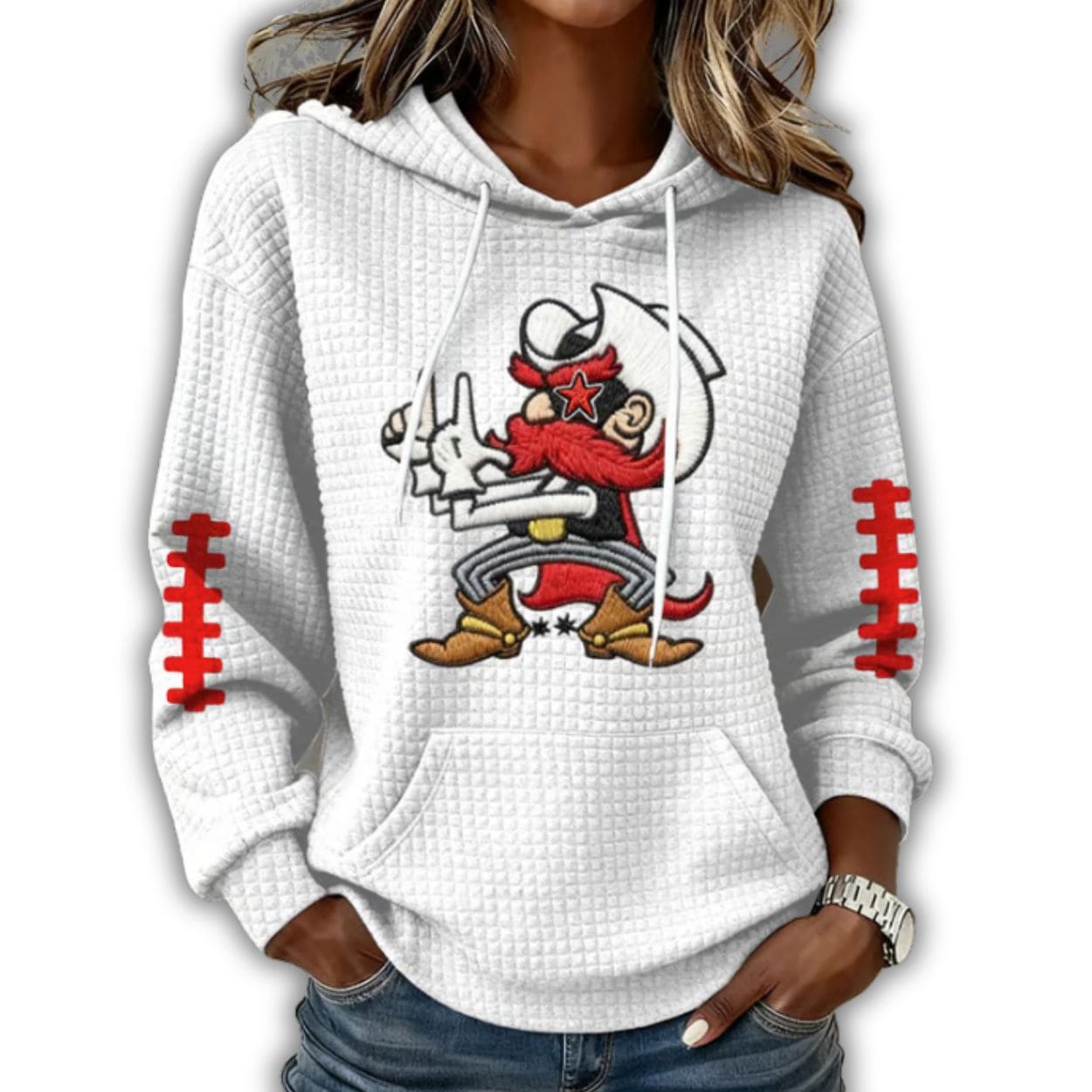 Made from a distinctive Waffle Fabric, this hoodie offers a cozy texture that’s perfect for those crisp game days or chilly evenings. The waffle knit not only feels great but also provides extra insulation without being bulky.