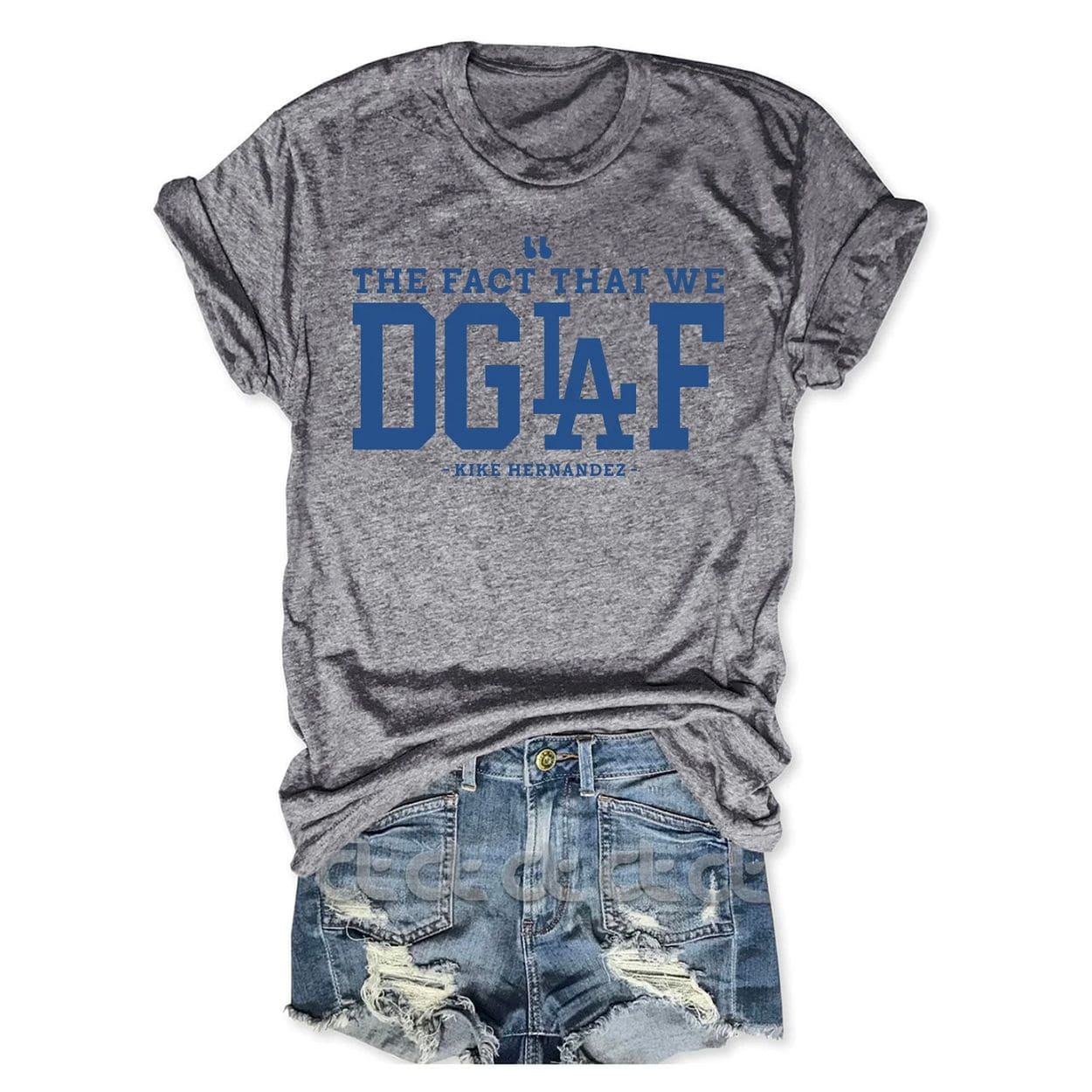 Embody the confident, unapologetic energy of the Dodgers’ fan-favorite, Enrique “Kiké” Hernández, with the legendary “The Fact That We DGAF Kike Hernandez T-Shirt”!