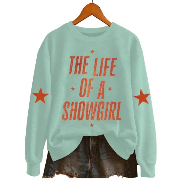 Live a life of glitz and glamour, even on your most casual days, with The Life of a Showgirl Graphic Sweatshirt. This stylish and comfortable piece is a celebration of performance, art, and a little bit of star quality, making it a perfect addition to any wardrobe.