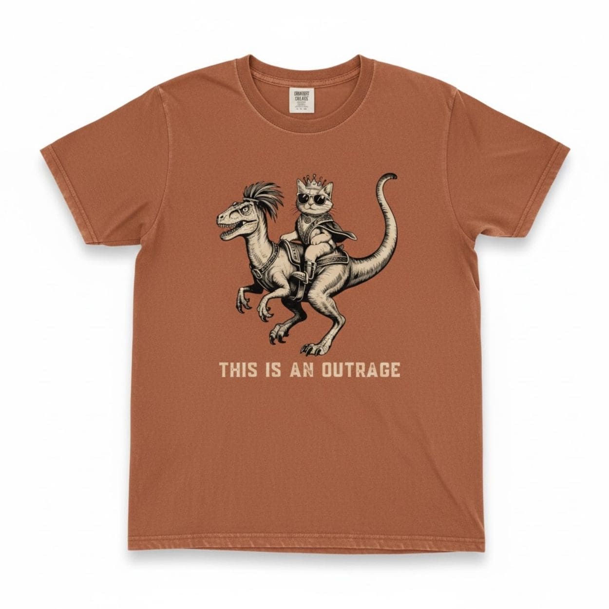 Embrace the hilarious and adventurous spirit of your favorite litR.P.G series with the This Is An Outrage Princess Donut and Mongo Shirt. This unique design features the iconic duo—a crown-wearing cat and a fierce dinosaur—capturing a moment of pure, comedic defiance.