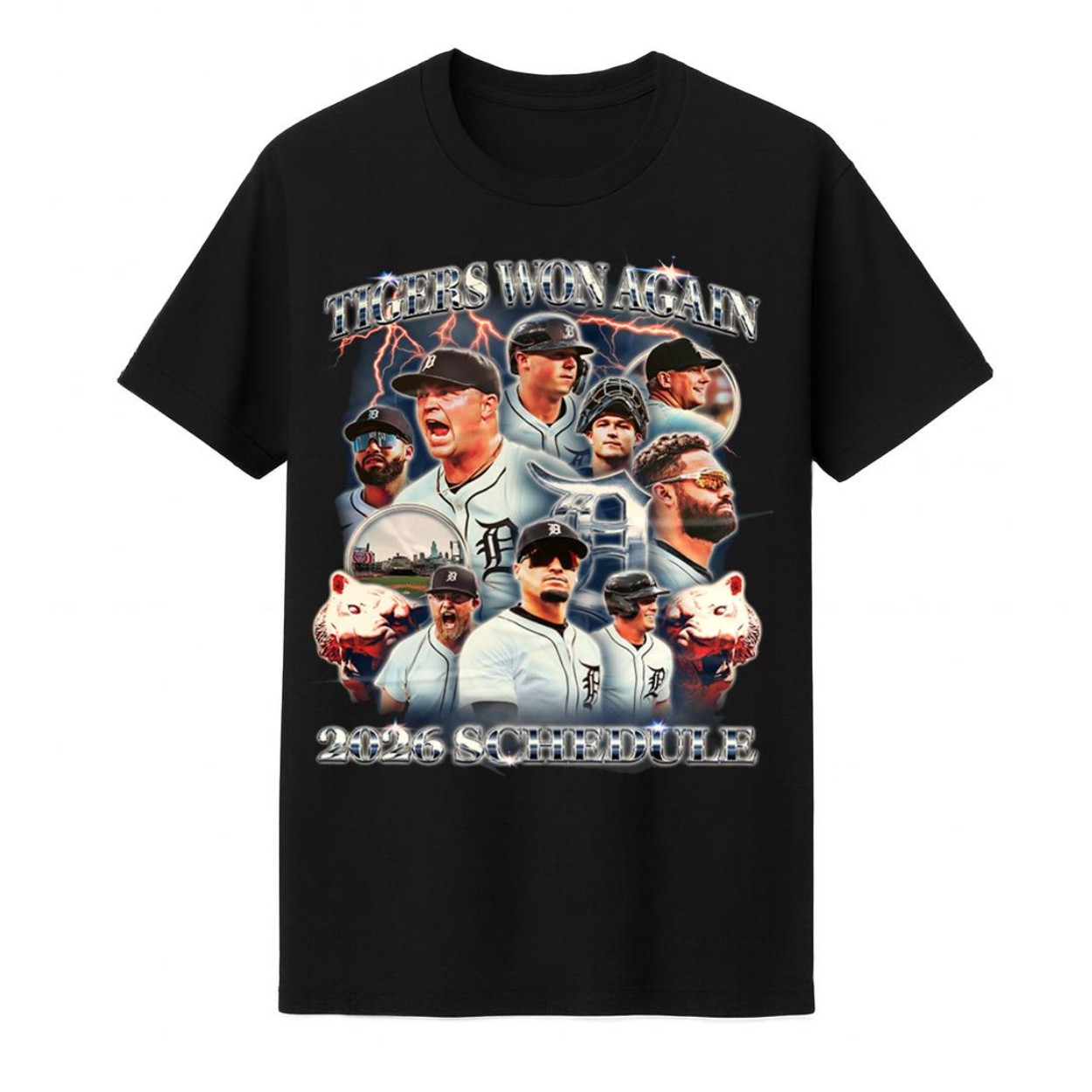 Bold Design: The front of the shirt is packed with fierce, vibrant graphics, showcasing your favorite Tigers players, and the bold “Tigers Won Again” text. The back proudly displays the complete 2026 schedule, so you’ll never miss a game!
