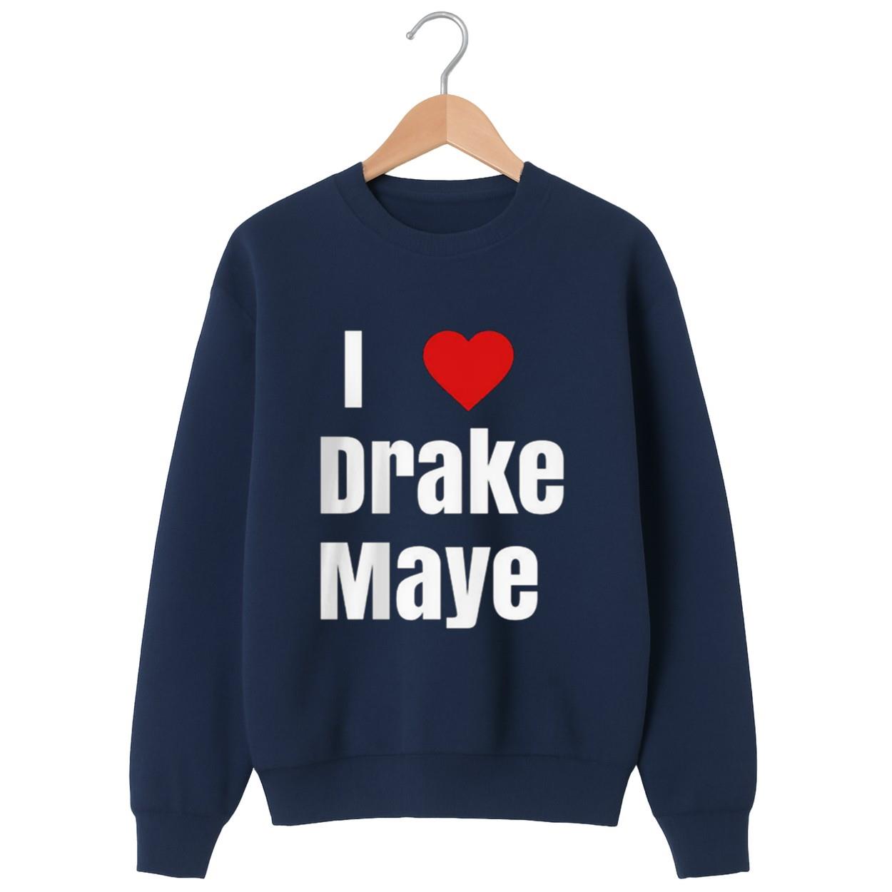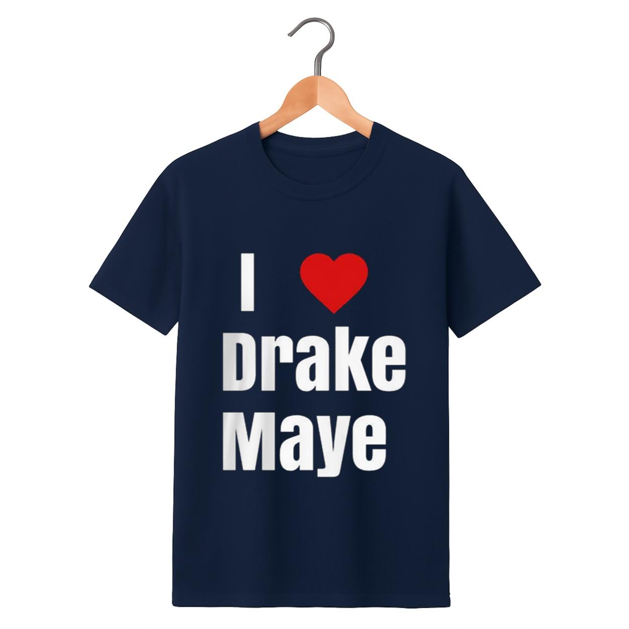 The design is bold and classic, featuring the text “I ❤️ Drake Maye” printed prominently across the chest. The versatile black color of the shirt makes the red heart and white text truly pop.