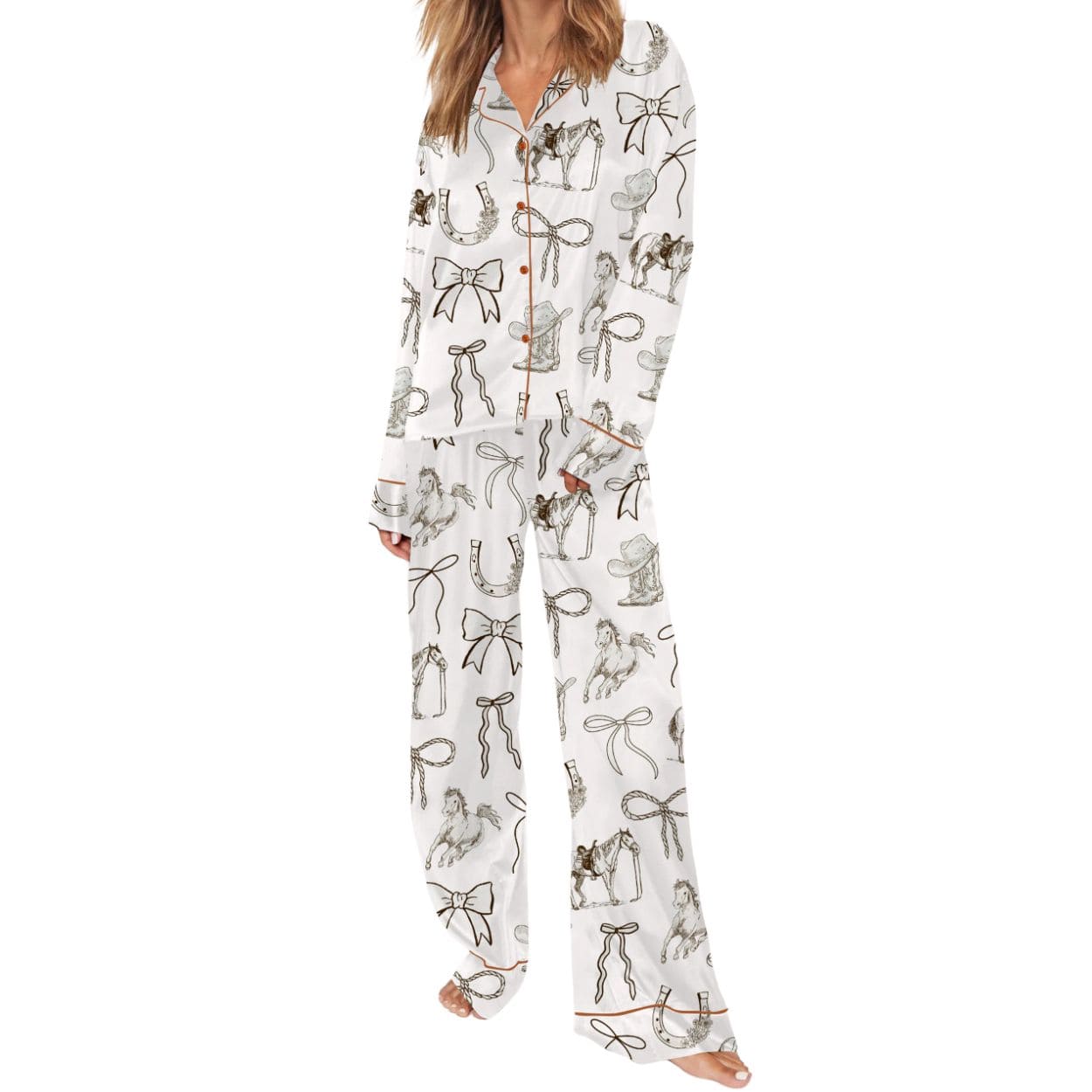 Ready to bring the ranch to your bedroom? Choose your size and order your Women’s Horse Girl Silky Satin Pajama Set today!