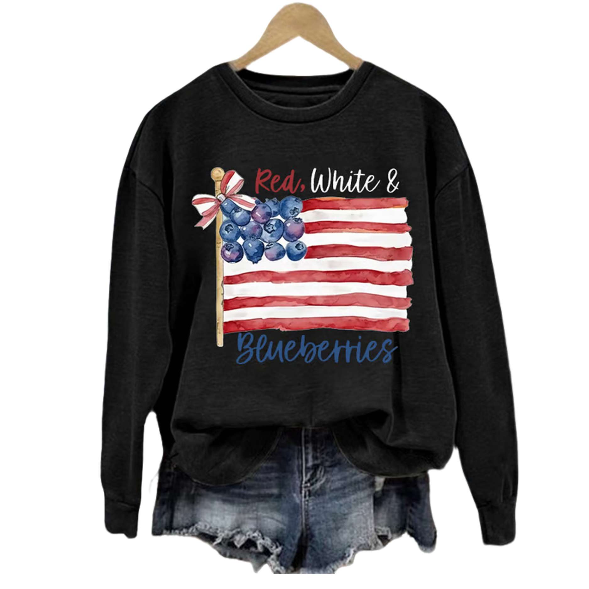 Embrace comfort and show your American pride with a touch of sweetness. Add the Women’s Red, White, and Blueberries Printed Sweatshirt to your collection today and enjoy its unique charm!