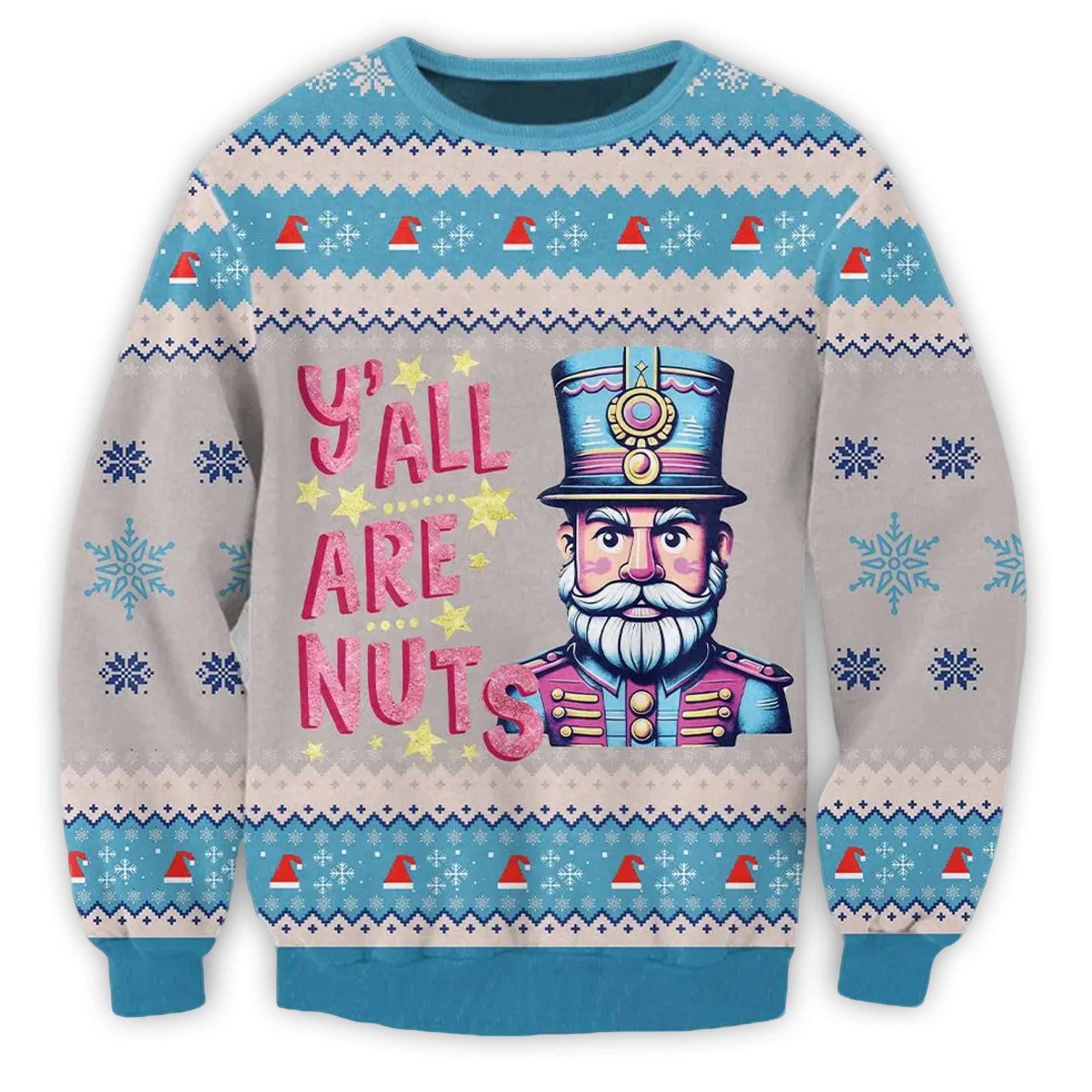 Get ready to crack up this holiday season with our hilarious “Y’all are Nuts Nutcracker Christmas Ugly Sweater”!